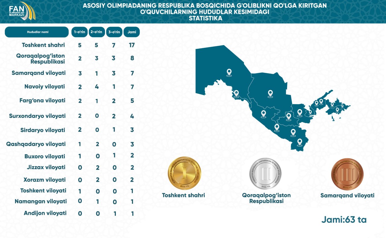 ASOSIY OLIMPIADA: HUDUDLAR KESIMIDA - INTELLEKTUAL REYTING 2026